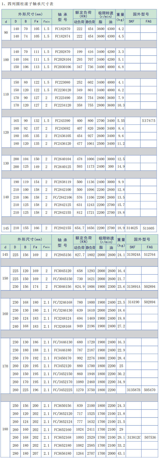 FOUR-ROW CYLINDRICAL ROLLER BEARINGS