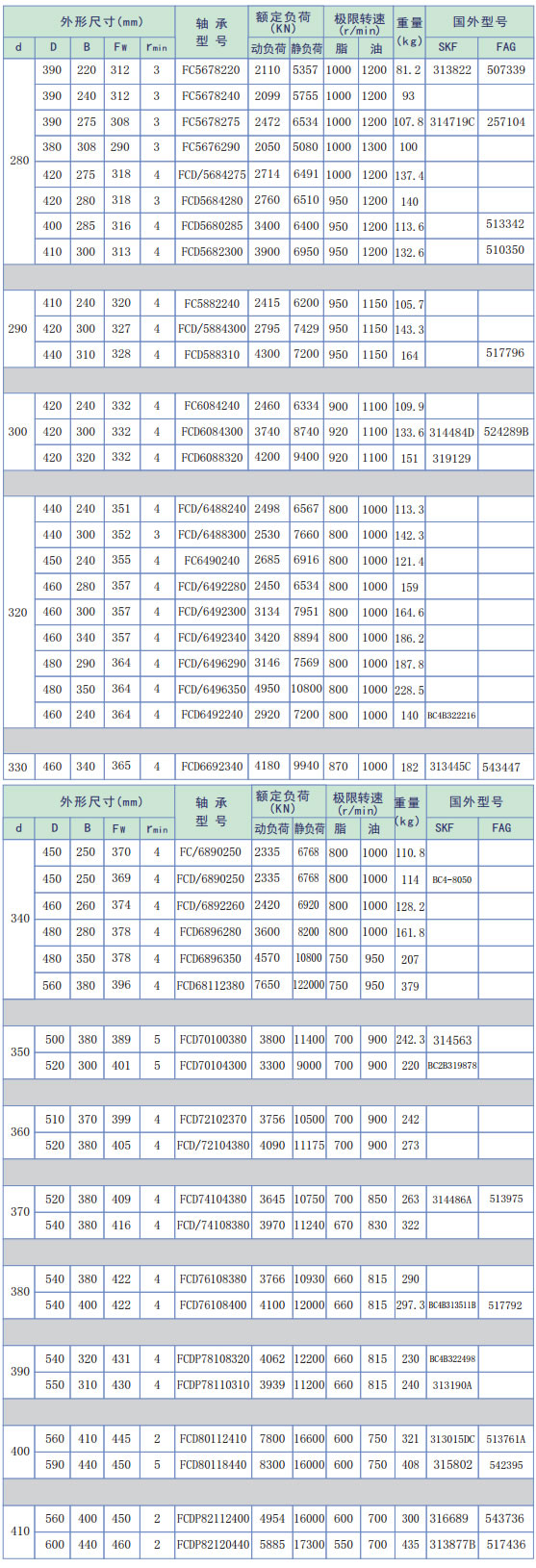 FC型:兩個帶擋邊的外圈,整體內(nèi)圈和梳狀保持架,圓柱滾子;